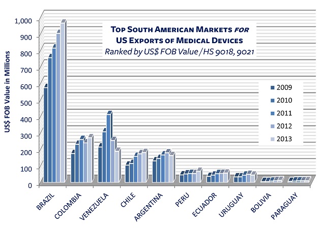 This data is from our free report, Quick Look @ US Exports of Medical Devices to South America, which includes more detail on US medical device exports and the Brazilian, Chilean, Colombian and Peruvian medical device import markets. Download the report here.