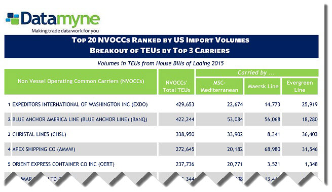 - Datamyne issues free monthly ranking reports on Carriers, NVOCCs and US Ports in US import trade. Our report on the top 20 NVOCCs x top 3 Carriers is updated each quarter. To browse our maritime data reports, go to our Free Report Library