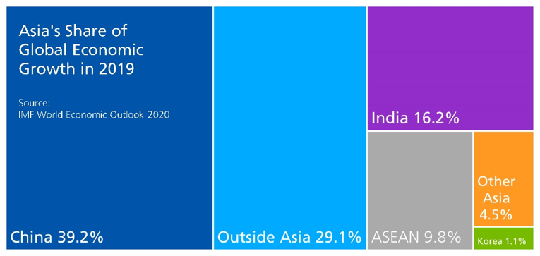 That was then. In contrast with 2003, when China accounted for 4.3% of global production, the IMF has estimated China’s share of the world’s output in 2020 at almost 17%. China makes an even bigger contribution to global economic growth, accounting for fully 39.2% of last year’s gain: