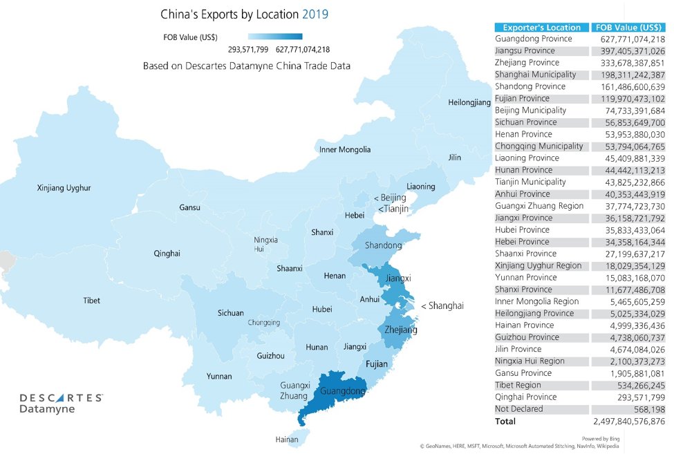 Our multinational trade data enables us to build a more detailed map of the outbound trade flows from Chinese province, to port, to destination.