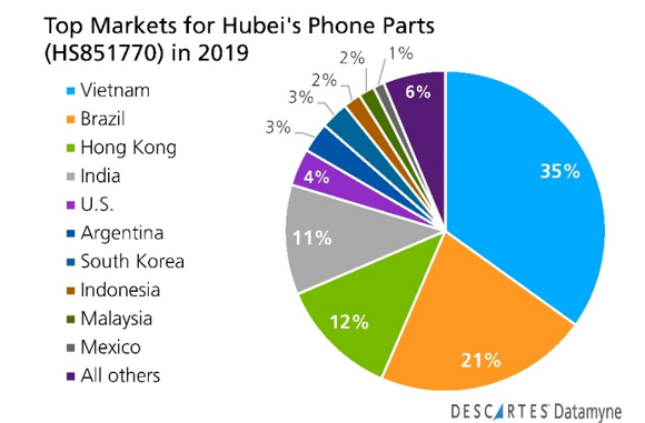 Here are the other top destinations for Hubei’s exports of parts for telephone and transmission apparatus: