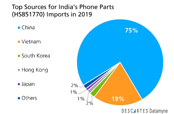 We can also switch from the sell-side perspective to the buy-side perspective. While the China data indicates that India is a top market for phone parts, our India trade data provides a measure of how reliant on, and vulnerable to disruption from China the Indian mobile phone industry is.