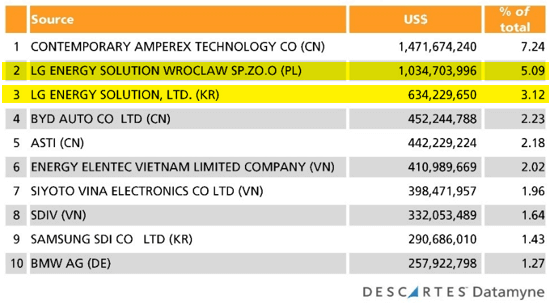 Chinese companies, starting with the world’s leading producer of car batteries, are well-represented among the top suppliers shipping Li-ion batteries this year, according to our Global Trade Data (Figure 6).