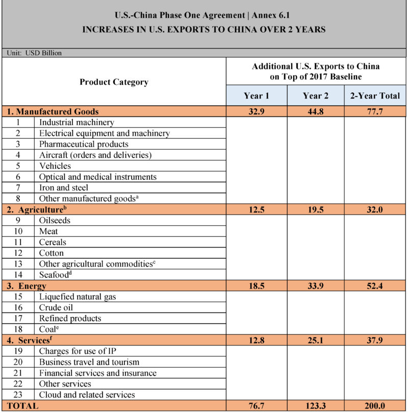 U.S.-China Phase One Agreement: The List, Please