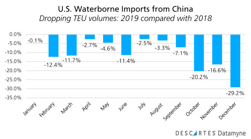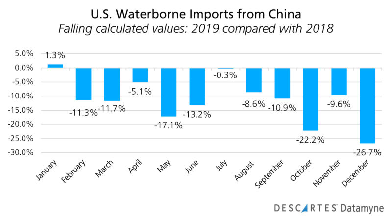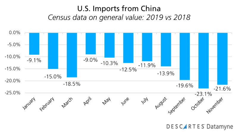 Descartes Datamyne data charts the deep impact of U.S. tariffs. Here is the Census data through November (the latest month available):